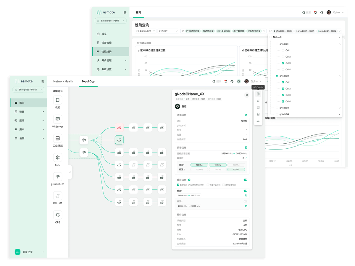 支持对毫米波专用 gNB 的全面管理,管理包括基站配置、状态监控、软件版本、性能优化等功能,确保网络覆盖和信号质量。